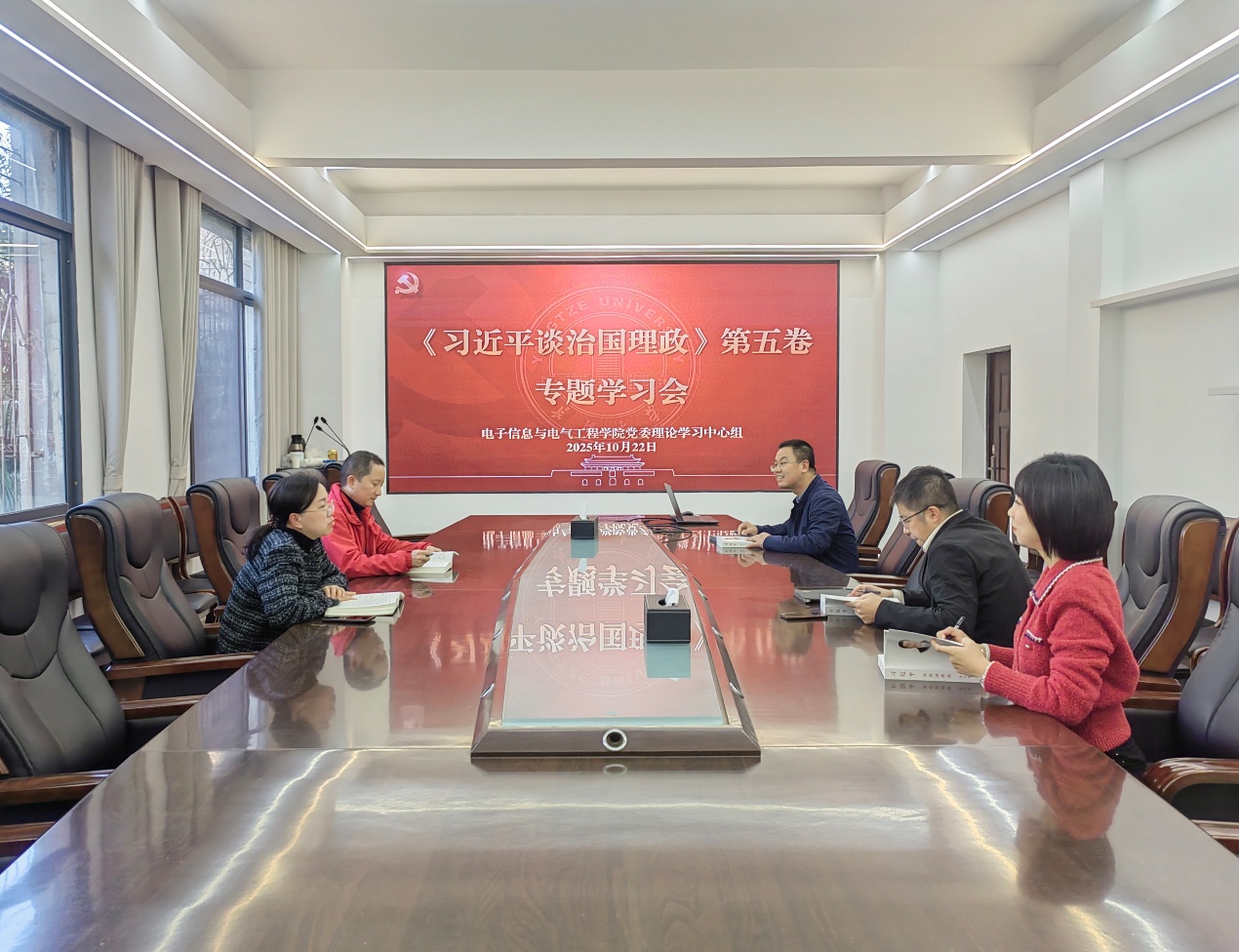 10月22日上午,DB电竞娱乐党委理论学习中心组在10教205会议室开展《习近平谈治国理政》第五卷专题学习,郭梅主持学习会。