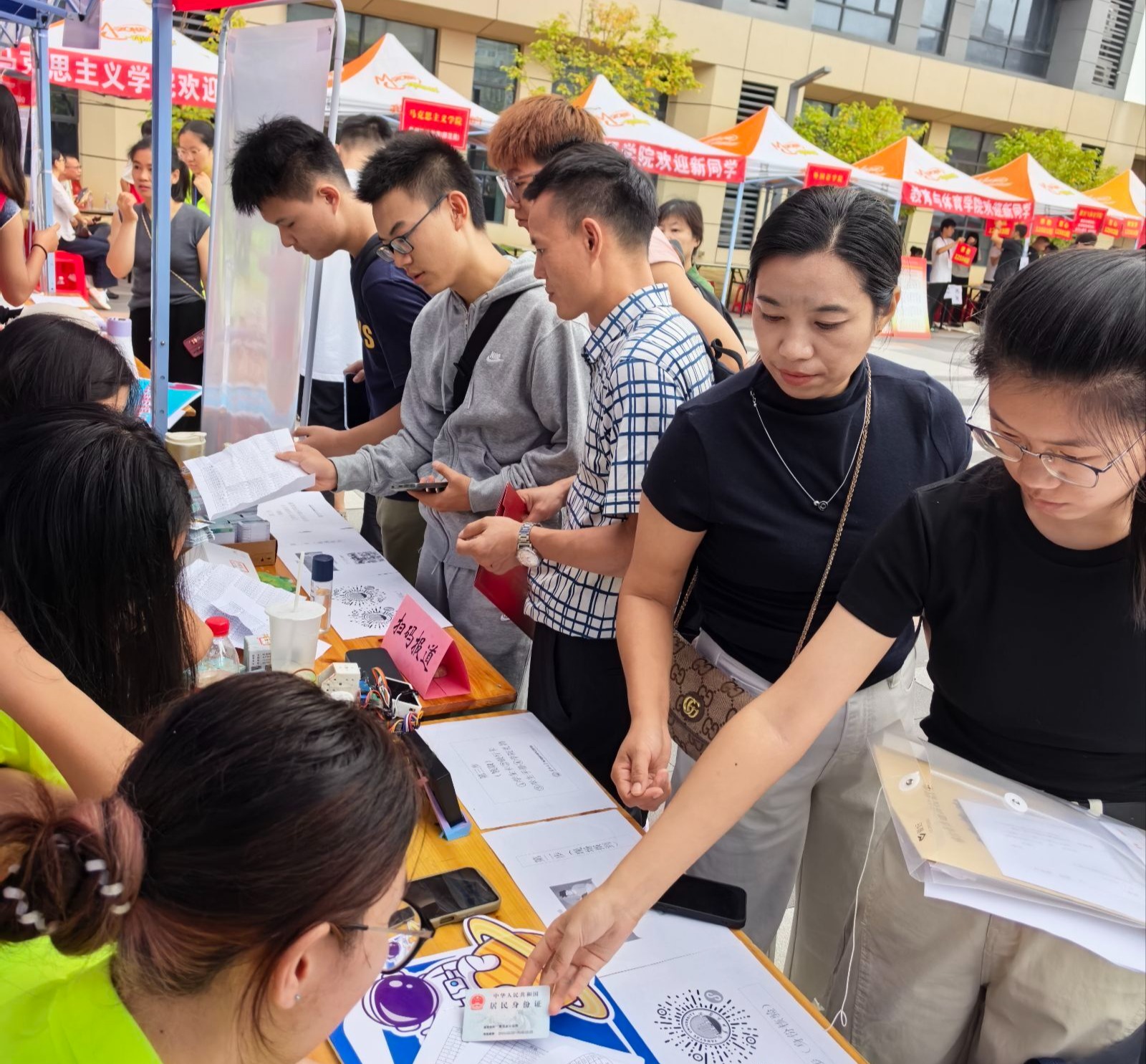迎新现场报到日,人头攒动,气氛热烈而有序。在学院报到点,工作人员分工明确,信息核查、学籍核验、发放物资材料、领取军训物资等流程高效顺畅。身着统一服装的学生志愿者成为了校园里最亮丽的风景线,他们活跃在校门、报到处、宿舍楼等各个角落,热情地为新生搬运行李、指引道路、答疑解惑,用真诚的笑容和耐心的服务消除了新生初来乍到的陌生与不安,让他们第一时间感受到了学院大家庭的温暖与友爱。学校和学院领导也多次来到学院迎新报到处,了解现场报到情况,和新生及家长面对面交流。